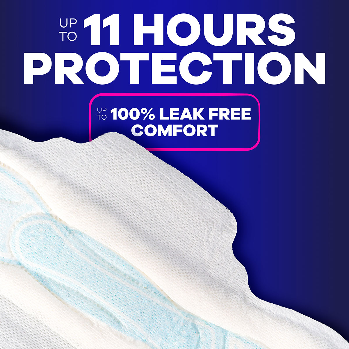 Rest easy with up to 100% leak-free comfort from the Always Maxi overnight pads. The pads feature 3X Protection System for all night protection, while RapidDRY works to wick away gushes fast to absorb more than you may need. Plus, the LeakGUARD core locks in leaks for long-lasting protection, while SecurelyFITS helps the pad stay in place. Always Maxi Overnight Size 4 Pads Unscented with Wings provide a 45% larger back*, for a Perfect Night Sleep. Sleep tight with Always Maxi Pads. *vs. Always Maxi Size 1