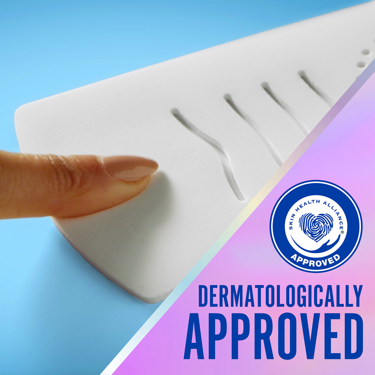 Always Pocket with Flexfoam menstrual pads have been dermatologically tested, and approved by the Skin Health Alliancean independent organization led by dermatologists and scientists. The qualification process includes an assessment of the ingredients, and clinical trial data. Always FlexFoam products have been endorsed by the SHA for several years and we will continue working with professionals to ensure our products meet high external standards.